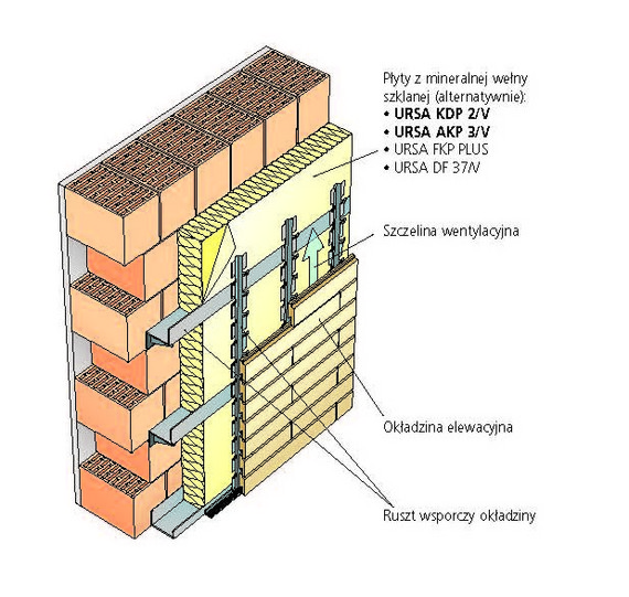 2. Przy izolacji ściany warstwowej i fasady wentylowanej wygodniej zastosować płyty z powłoką z welonu szklanego (URSA KDP 2/V, URSA AKP 3/V) niż rolki.