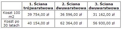 Rozwiązania przykładowe - koszty wykonania i utrzymania przy założeniu odświeżania elewacji tynkowej co 5 lat.